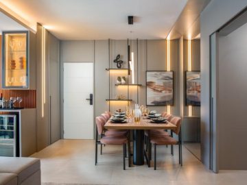 porcelanato nas áreas sociais e de serviço. As suítes